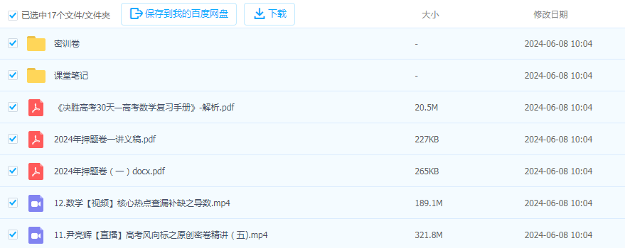 尹亮辉数学 2024高三高考数学 密训班 百度网盘